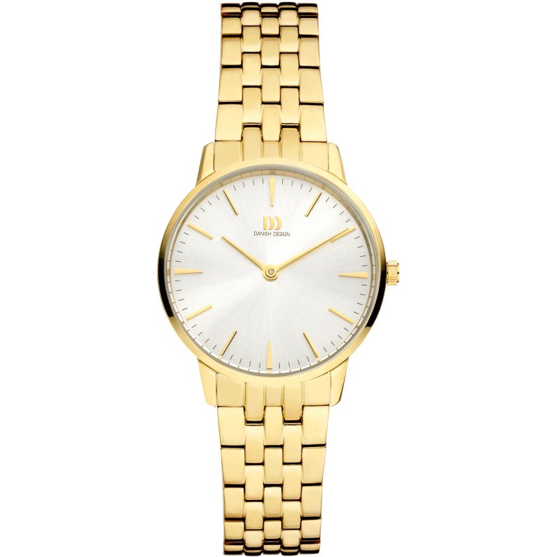 Movimiento analógico de cuarzo calibre Miyota GL20 Esfera de color plata Caja de acero inoxidable IP dorada Diámetro de caja: 32mm Cristal mineral Resistente al agua 3atm Corona a presión Tapa a presión Correa de acero inoxidable bicolor IP dorada Cierre desplegable
