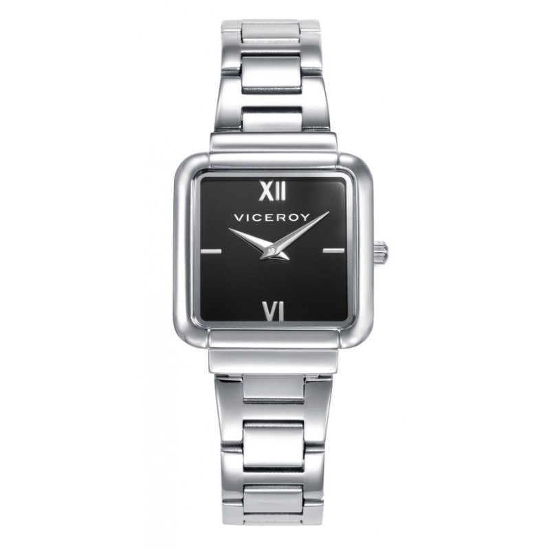 Esfera de color negro Caja de acero inoxidable Medidas de caja: 26mm x 32,5mm (Alto x Ancho) Cristal mineral Movimiento de cuarzo analógico Resistente al agua hasta 50 m. Funciones: Horas, minutos y segundos Correa de acero inoxidable Cierre desplegable con pulsadores Coleccion Chic