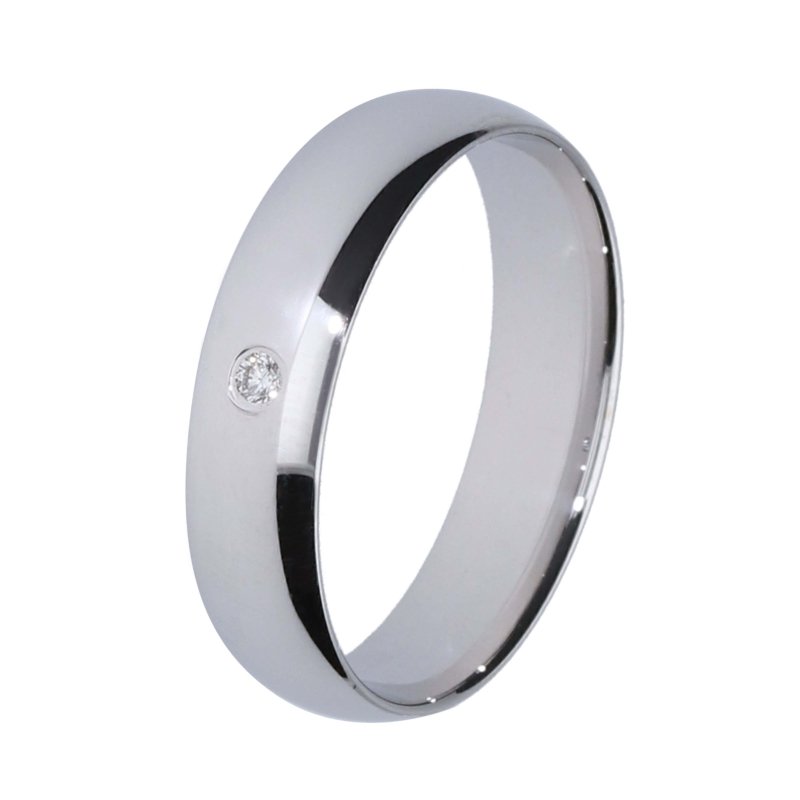 ALIANZA DE ORO BLANCO CONFORT CON DIAMANTE 5.00 MM